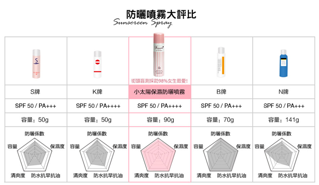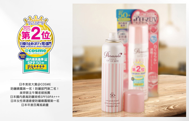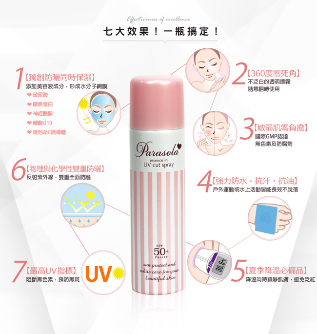 ★ 透明無色:透明的防曬噴霧,不再有因塗抹不勻而出現白色印痕。
