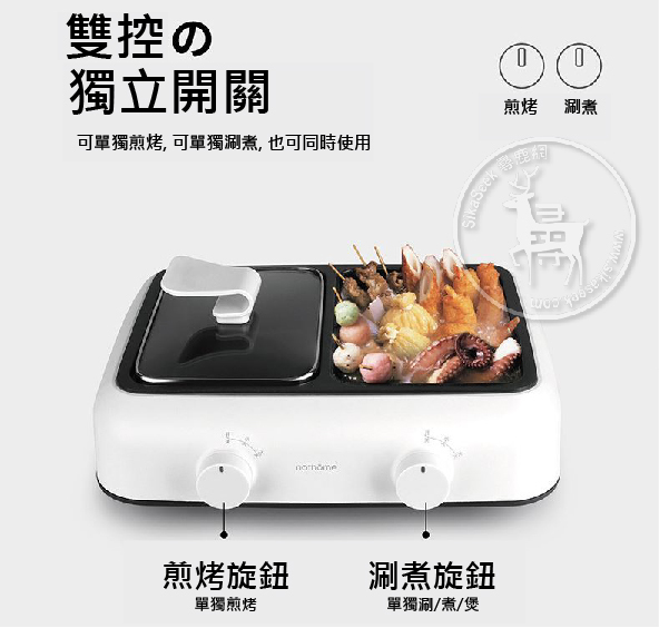 「帶你味蕾雙重享受 一邊烤肉 一邊邊爐」瑞典Nathome雙邊多功能鍋 超強大功能 ❤涮🧡煮💛燉💚煎💜蒸💙燜💜炸 一鍋多用