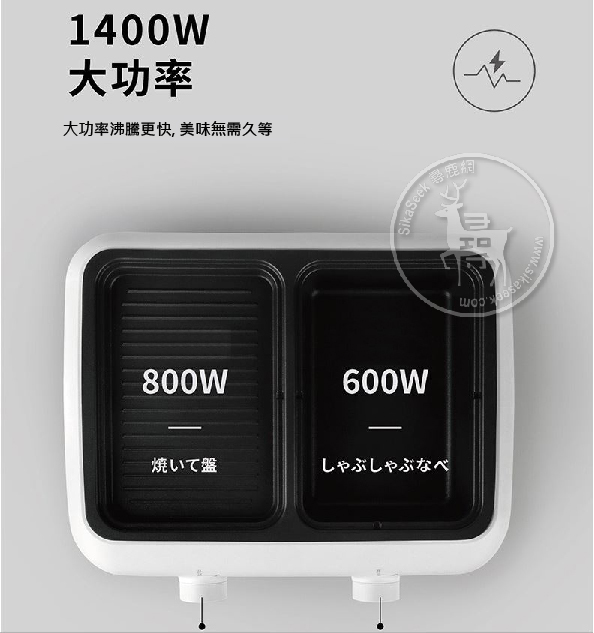 ✨功率: 1400W (火鍋600w+烤盤800w)