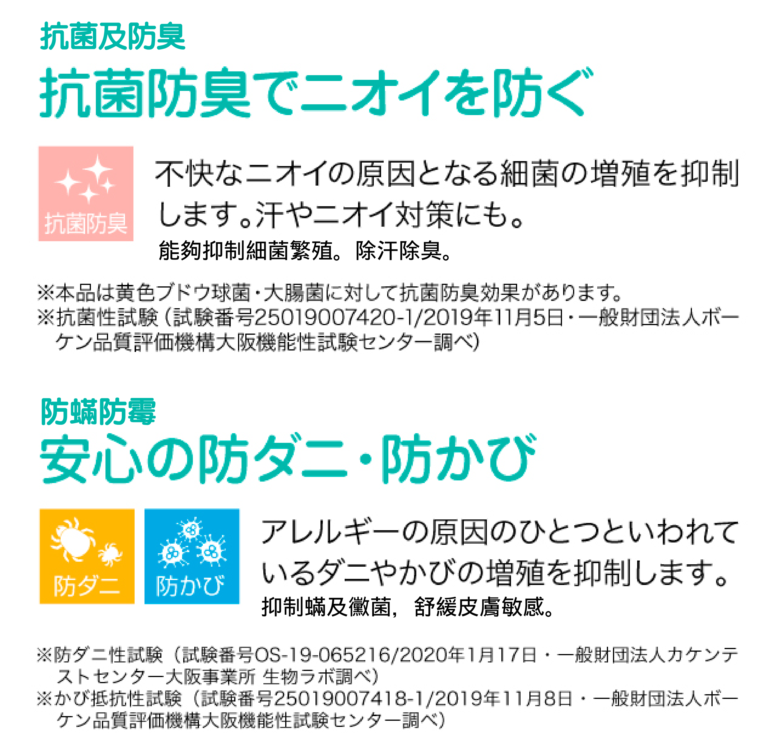 * 測試證明有效防蟲、塵蟎,抗病毒、細菌,除汗味、臭味