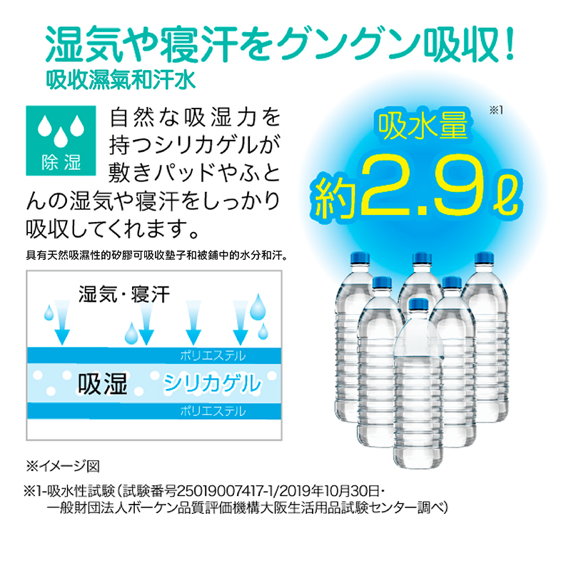 * 強力吸水量可高達2.9分升,比其他吸濕產品更加有效