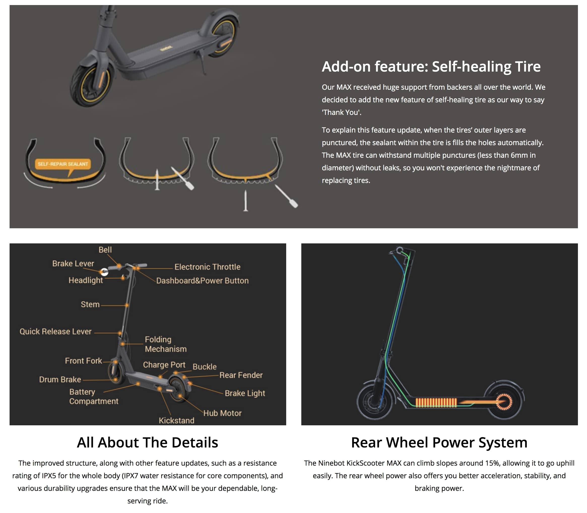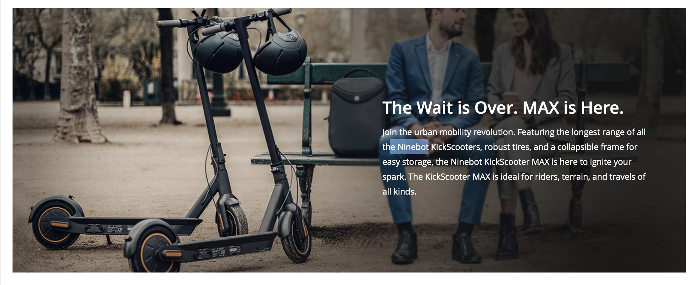 Segway-Ninebot Kickscooter MAX 電動摺疊後驅滑板車—迄今為止騎行穩定性最高及性能最強大的Kickscooter登場!65KM超強繼航力!10寸充氣輪胎!後驅動力!改寫電動滑板車難以在崎嶇不平的道路舒適騎行的歷史!