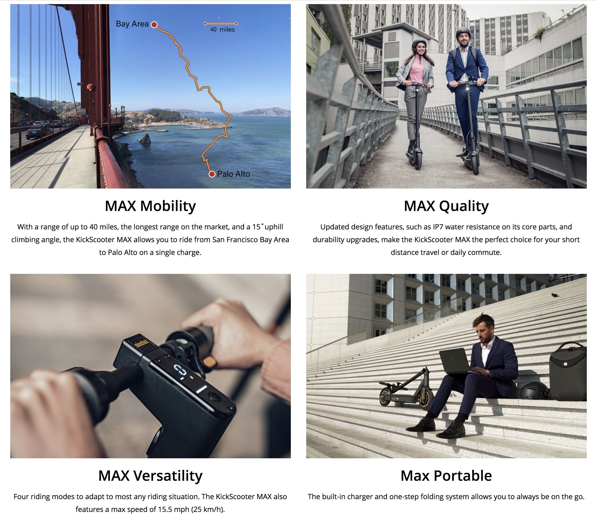 KickScooter MAX的行程範圍最常可達40英里(60公里),