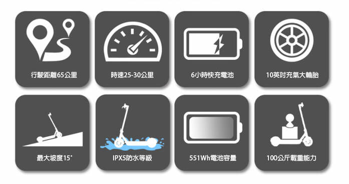 • Kickscooter 產品中最高的65KM超強繼航力!足夠一整天的長途旅程!