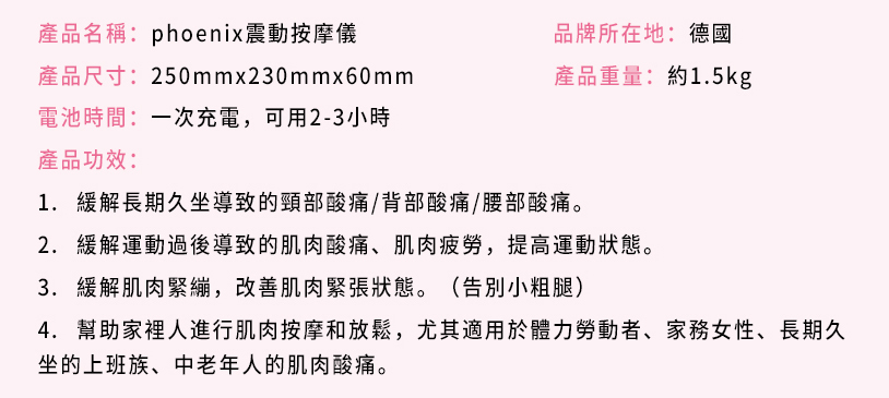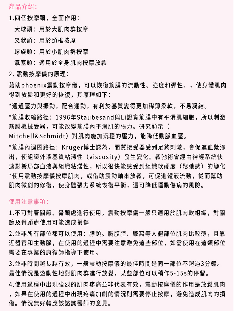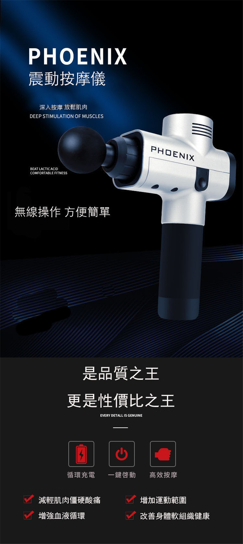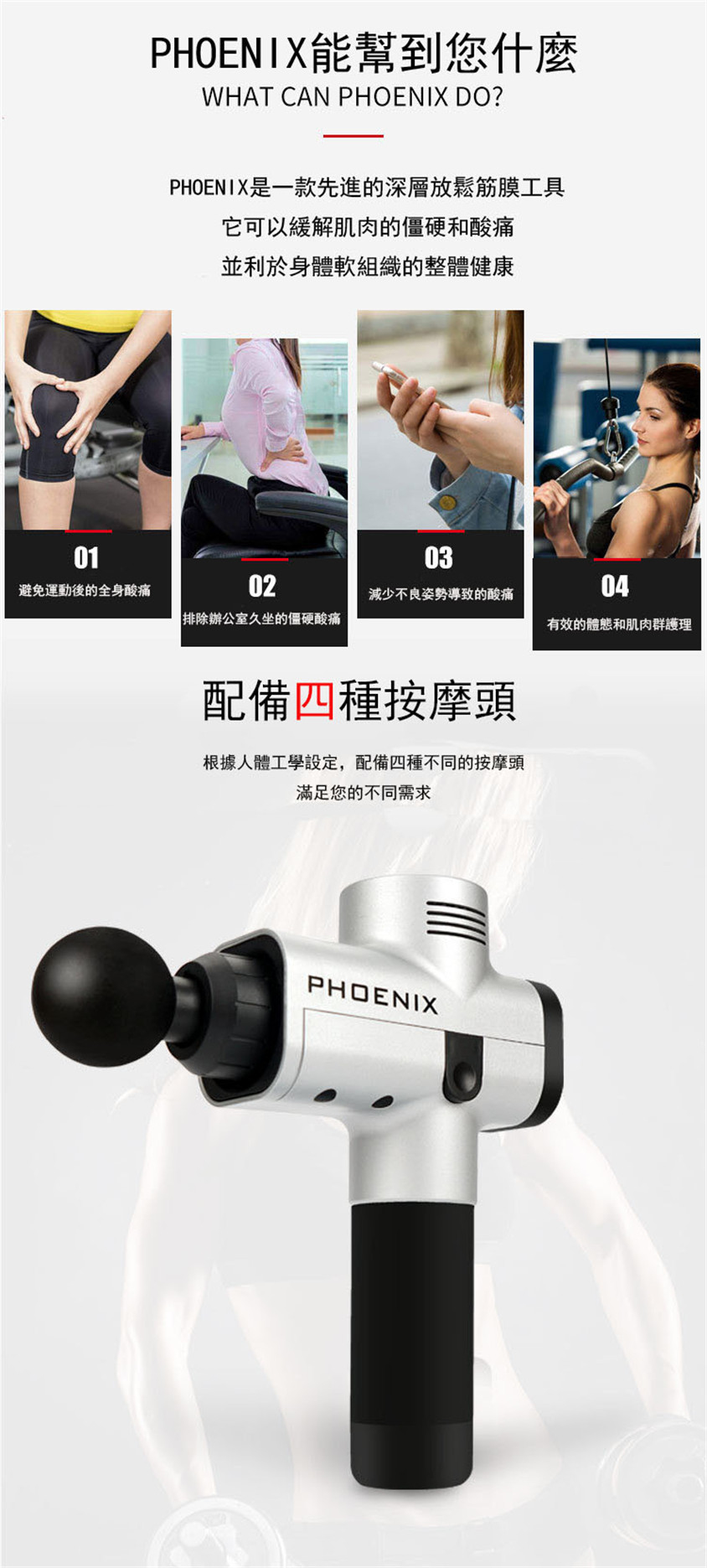 Phoenix A2 深層肌肉筋膜按摩槍 「緩解肌肉酸痛、繃緊狀態,可以恢復筋膜的流動性、強度和彈性。」