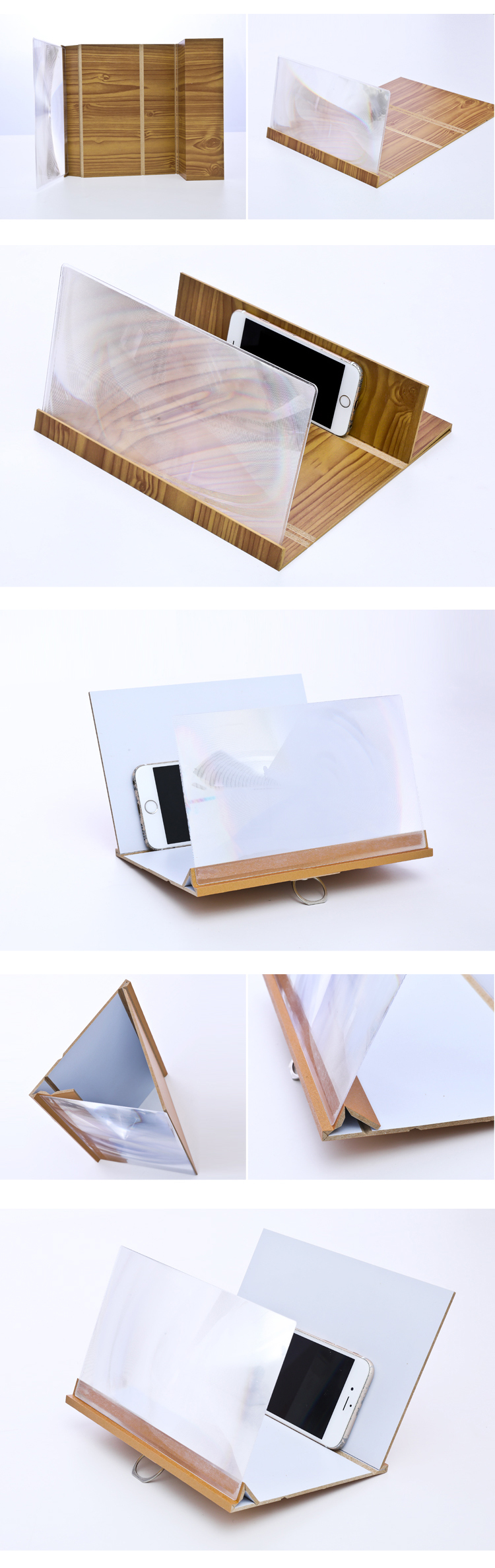 專為手機而設,可調節觀看角度和支撐起手機,高清光學放大鏡片,減少眼睛過份費神,有助保護您的視力。摺疊式設計,摺疊後厚度輕薄易收藏,不需電源,更方便攜帶。讓您小小的手機 Mon 都可以變成大大的平板尺寸,觀賞影片不用再忍受「手軟眼朦」!