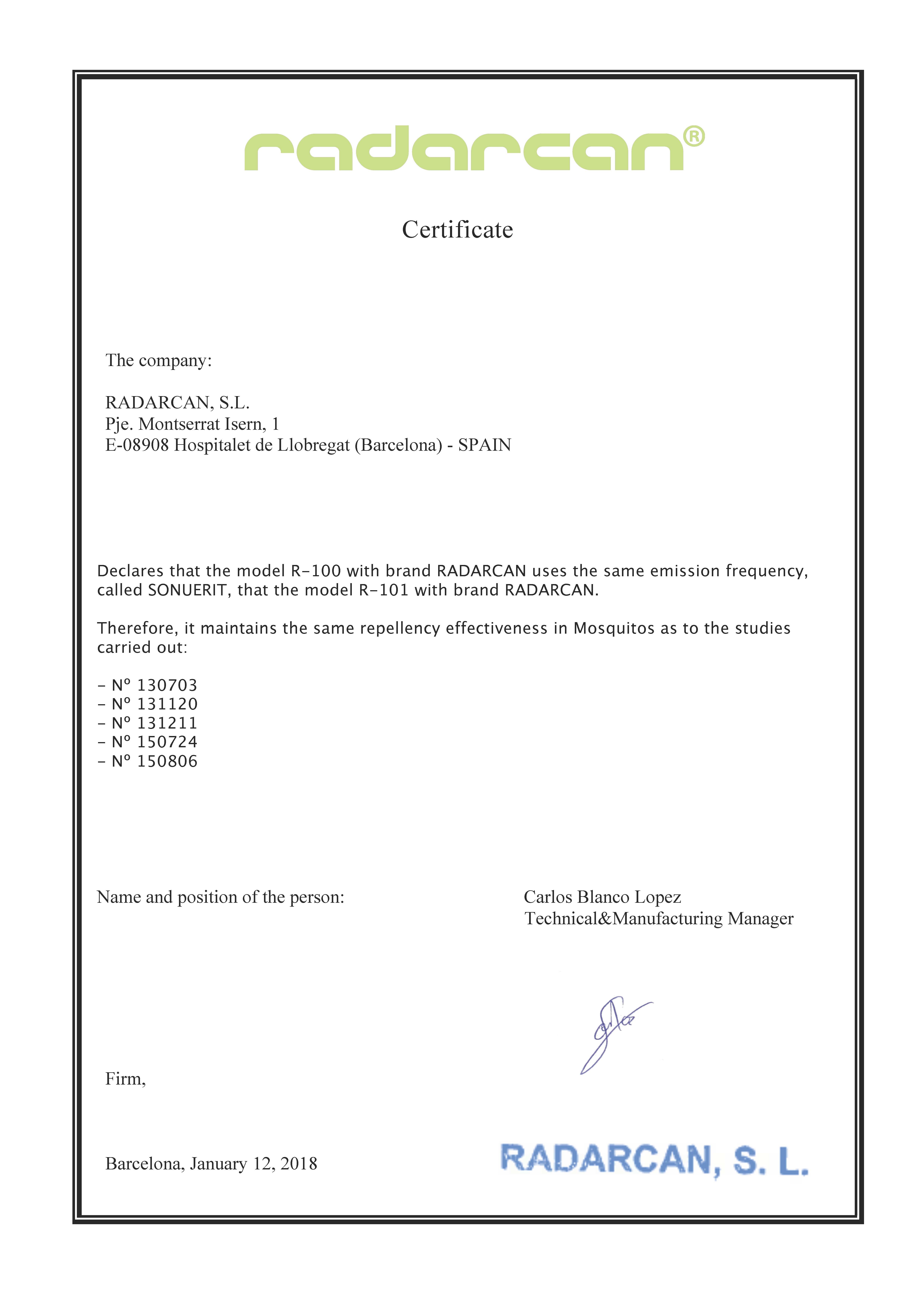 ● 攜帶型驅蚊器結合了Radarcan的專有SONUERIT技術,免被一般蚊子、白紋伊蚊、虎蚊、埃及斑蚊、瘧蚊等的