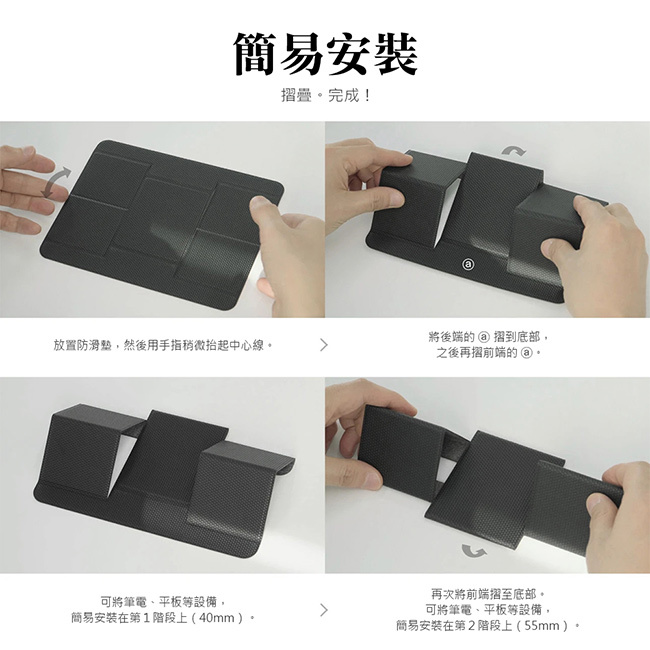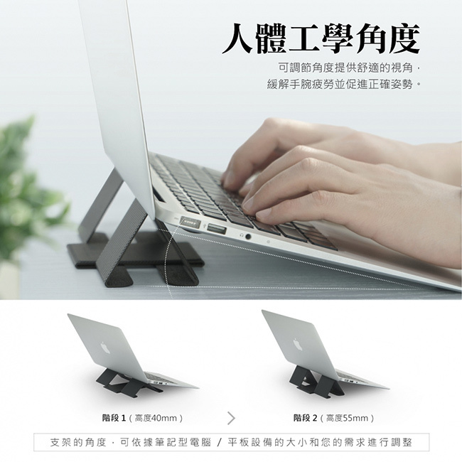 • 升級設計 - 2階段的摺疊使用高度,並為您的設備提供簡潔和小巧的外觀。