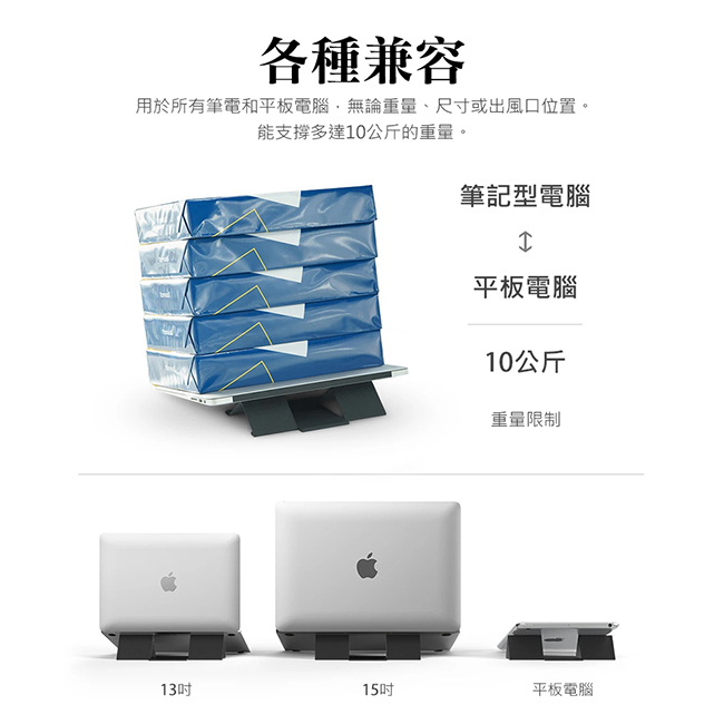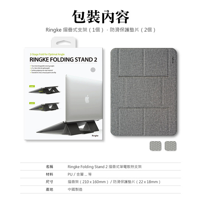 • 多種兼容性 - Ringke Folding Stand-2 適合大多數筆記型電腦或平板電腦,也可代替滑鼠墊。