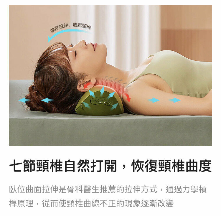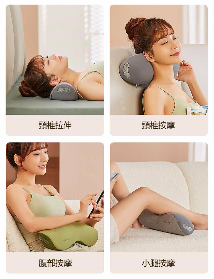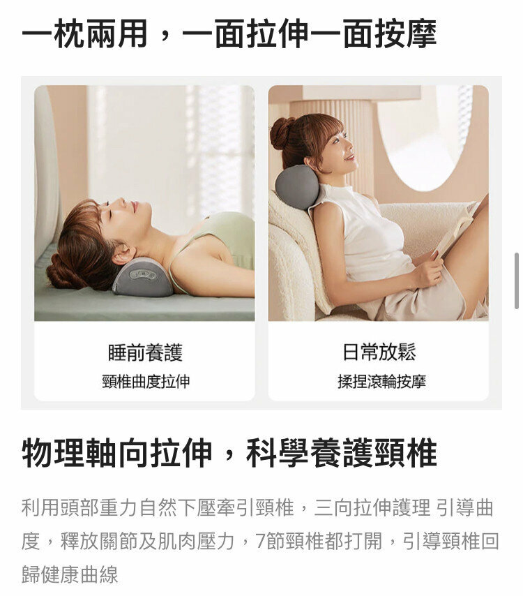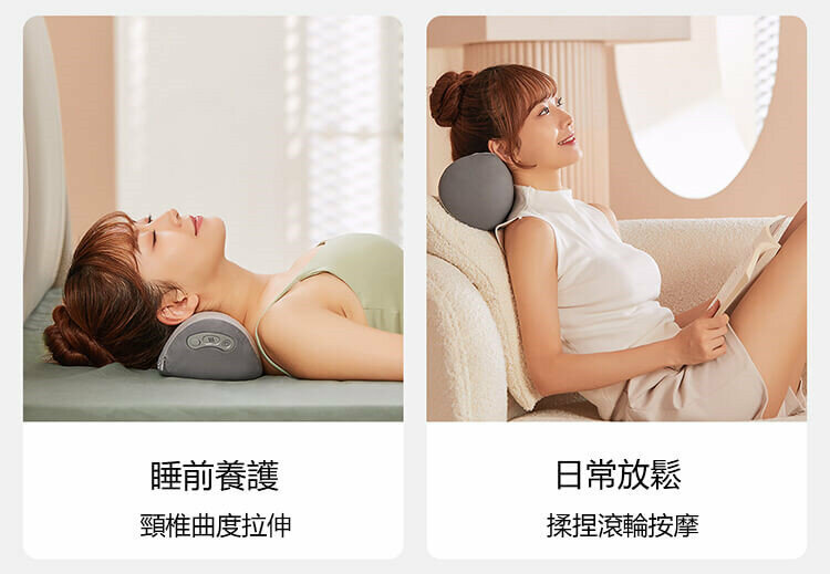 一枕多用—這是一款熱敷、按摩、牽引三合一深度放鬆疲勞護頸枕,工作、居家、旅都可以享