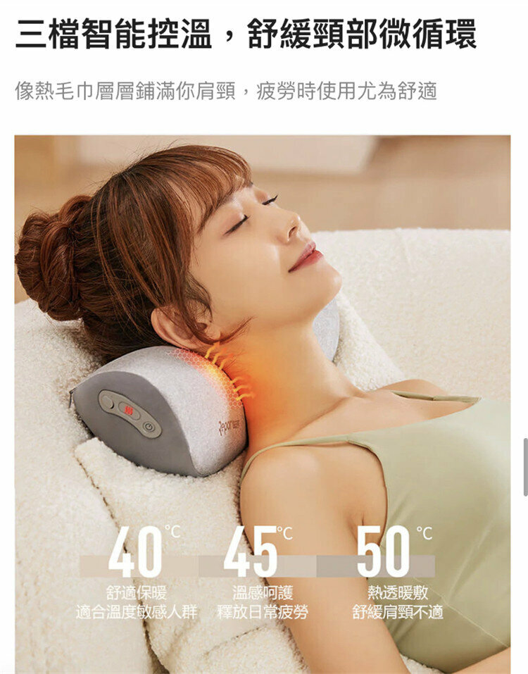 三檔控溫—根據個人舒適度選擇適合的溫度,舒緩頸部微循環