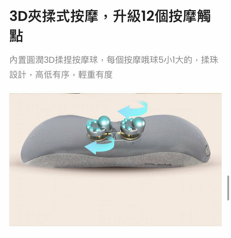 仿真人揉捏—3D夾揉式按摩,高度還原手指按摩,力度舒適,穴位準確