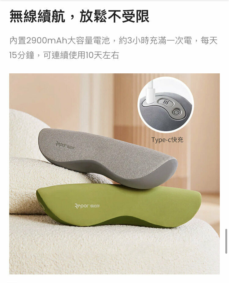 Repor多功能頸部護理枕丨緩解頸部疼痛丨按摩枕 x 熱敷理療 x 牽引枕
