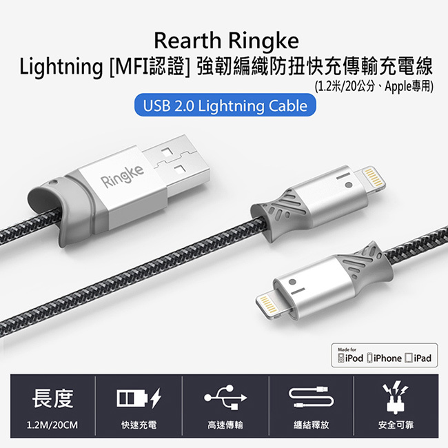 【Ringke】強韌編織防扭Lightning傳輸充電線 MFI認證