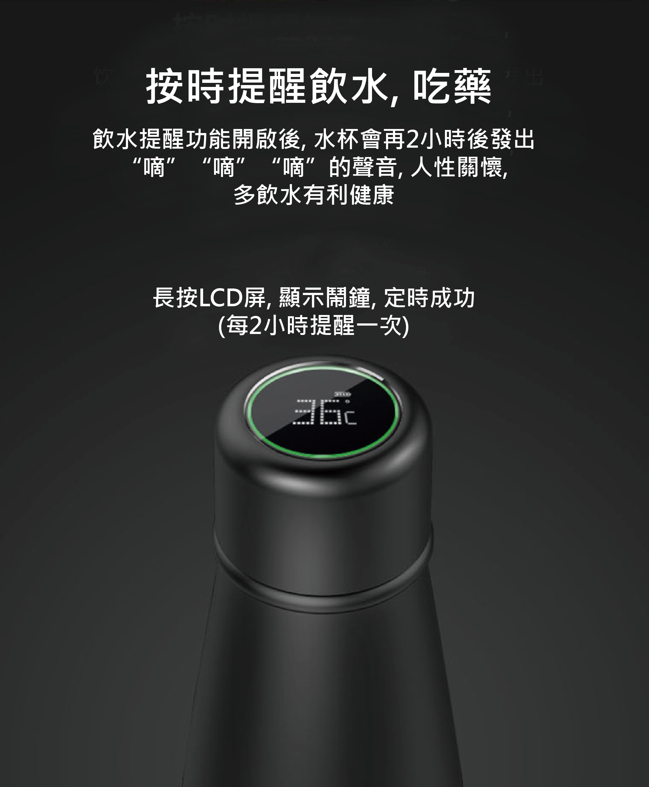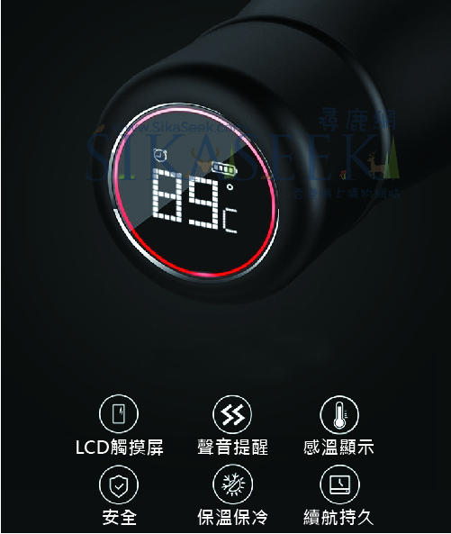 我係會帶水樽出街既人,因為覺得出街買水飲好唔抵,又唔環保,d膠樽飲一個dum一個。不過日子耐左,就覺得個手袋成日都好重,其實我知呢d功能水樽普遍都好重,加上裝埋水,就更加重,有時仲袋左樽水成日忙到唔記得飲水,搞到皮膚都乾晒。最近又比我物色到個正野,解決我以上2個問題。而家個個都追求智能生活,對一個飲水既人尼講,又點唔可以擁有一個 "智能水杯" 呀。呢個"智能水杯" 可以保凍保暖,最正既係可以睇埋水溫。點睇?係個杯蓋頂有LCD touch mon顯示當時水溫。除左顯示水溫,仲會顯示唔同顏色提示你水溫大約範圍,充電2個鐘就可以用30個鐘。仲有一個特別功能可以開啟"每2小時提示飲水"。Cool cool既黑色杯身,配上唔同顏色既LED燈,簡直係型到爆。