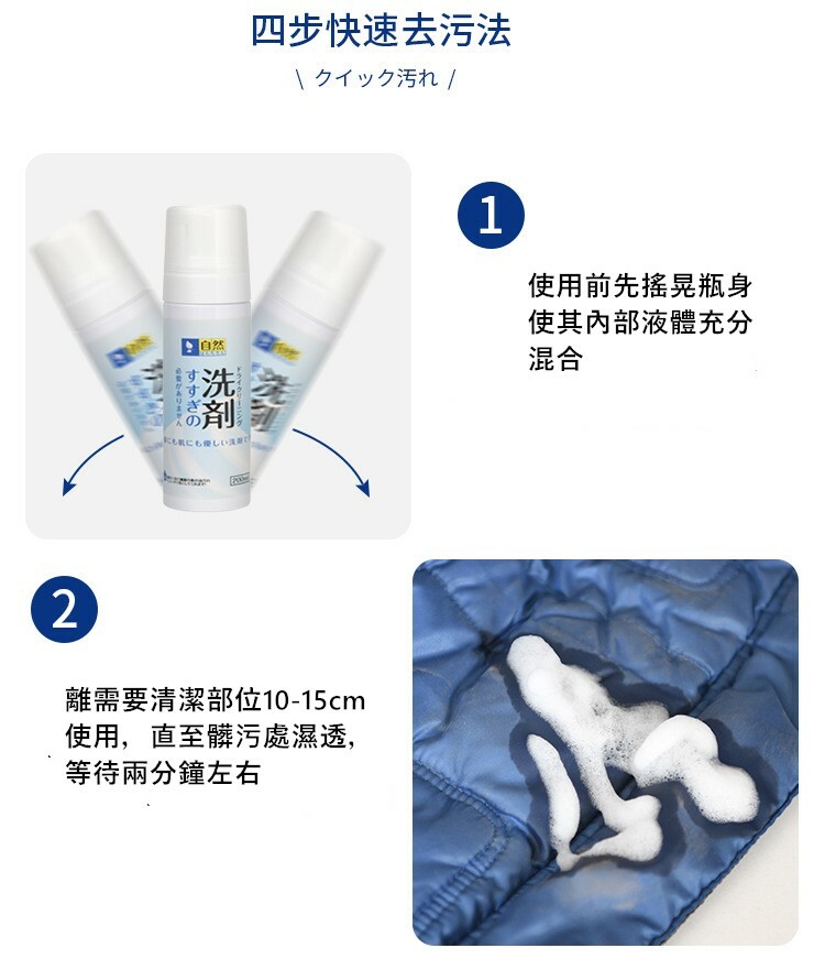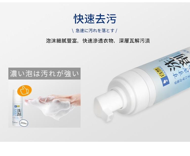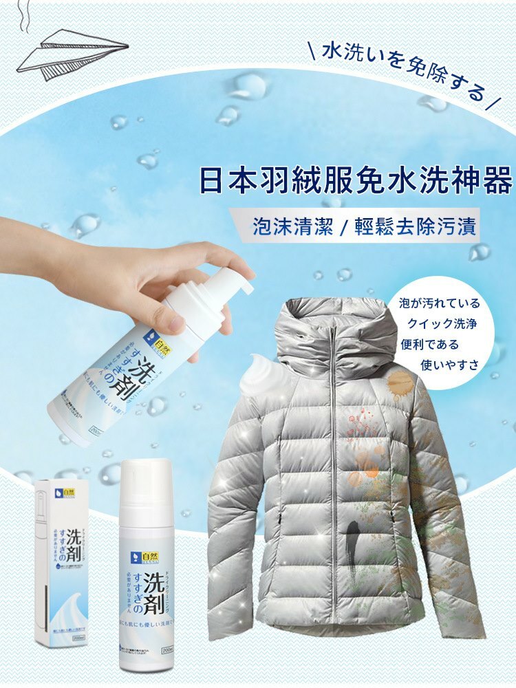 日本 羽絨衣免水洗快速去污泡沫乾洗劑200ml