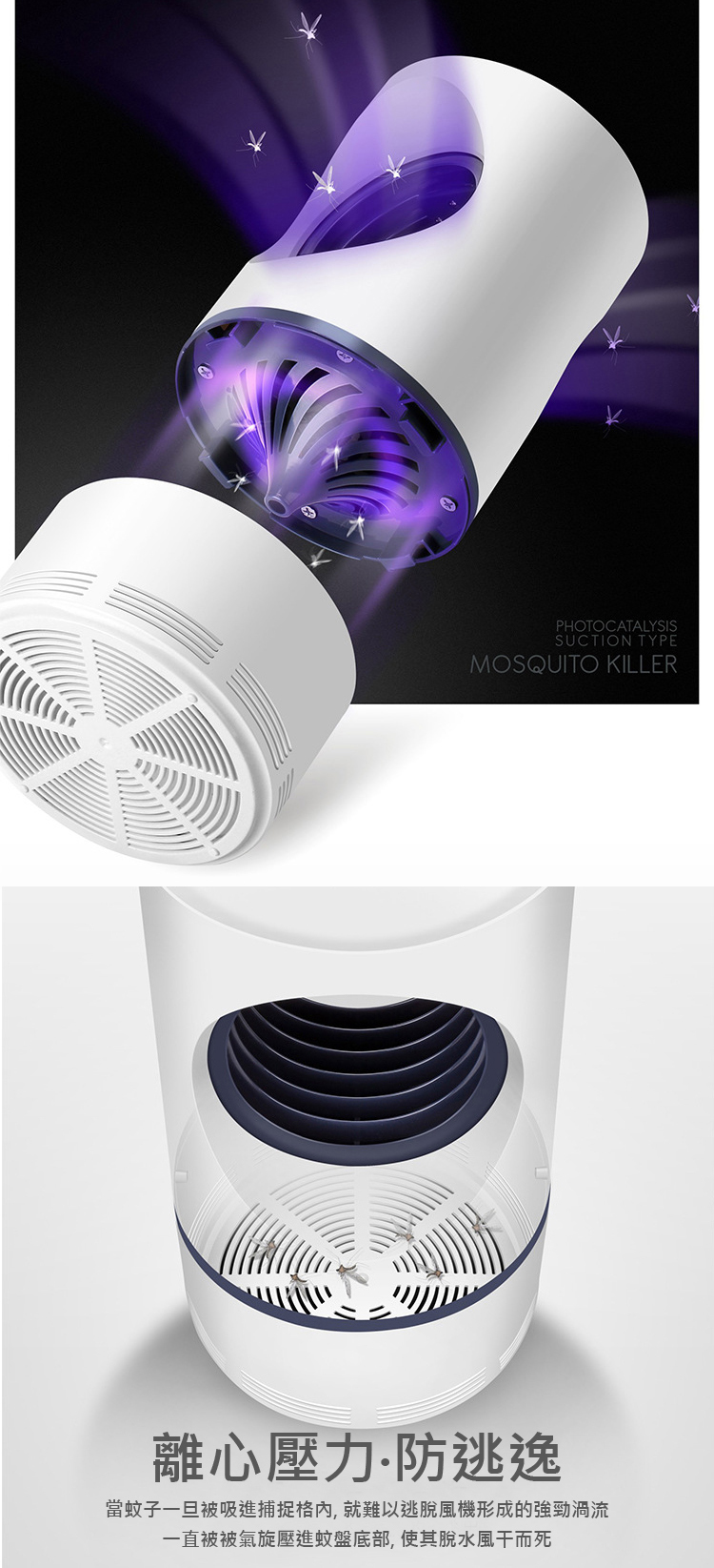 USB「細細部大大用」光觸媒捕蚊燈 【舒適靜音 母嬰適用】