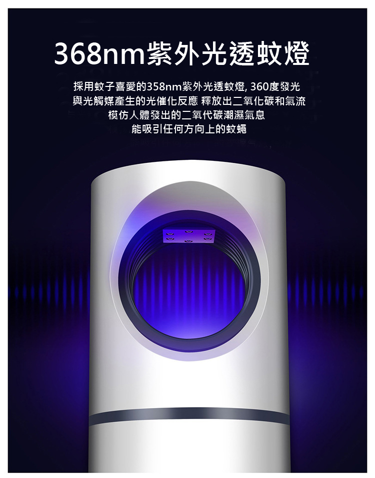 採用蚊子喜愛的358nm紫外光透蚊燈, 360度發光