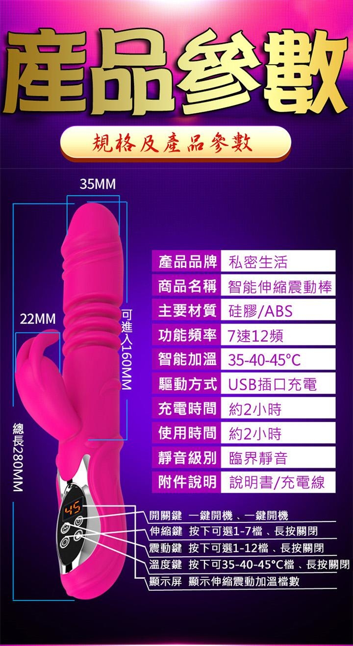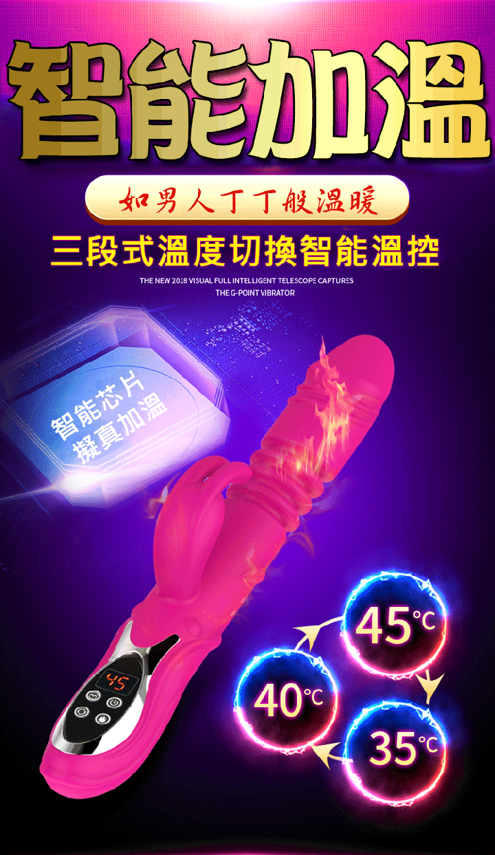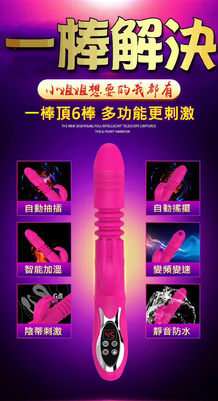 智能自動伸縮震動按摩棒 「旋轉搖擺、強勁馬達、3段加溫」