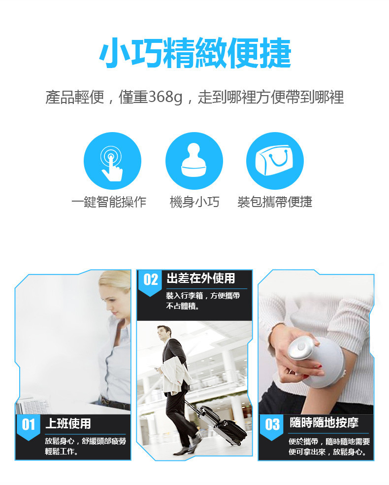 • 適用頭部/肩部/背部/腰部/腿部/手臂/腳部全方位兼顧