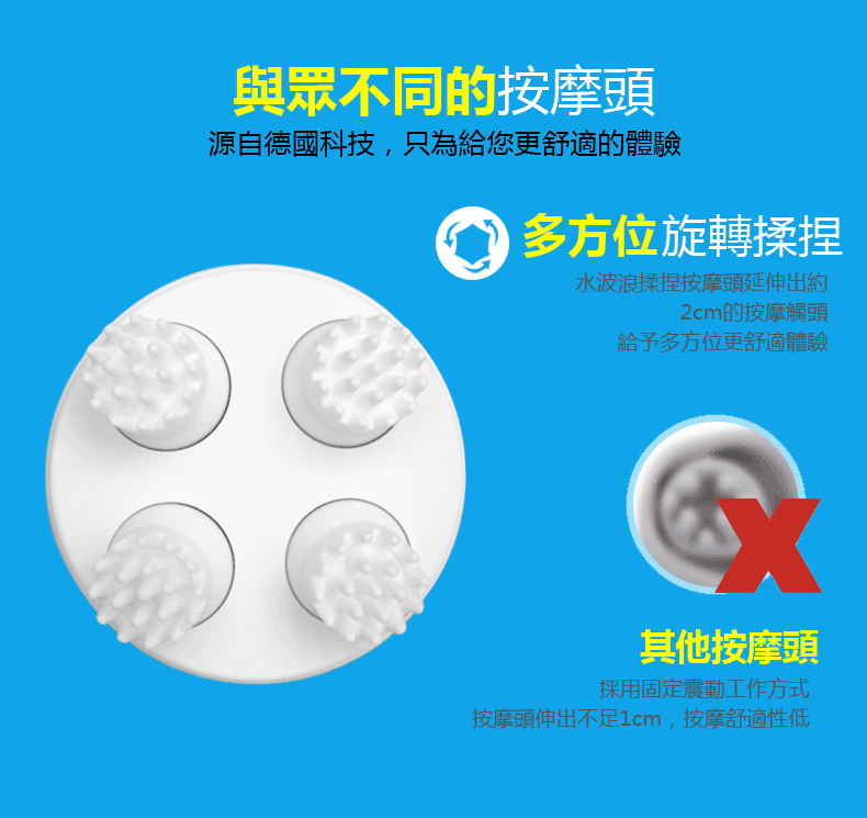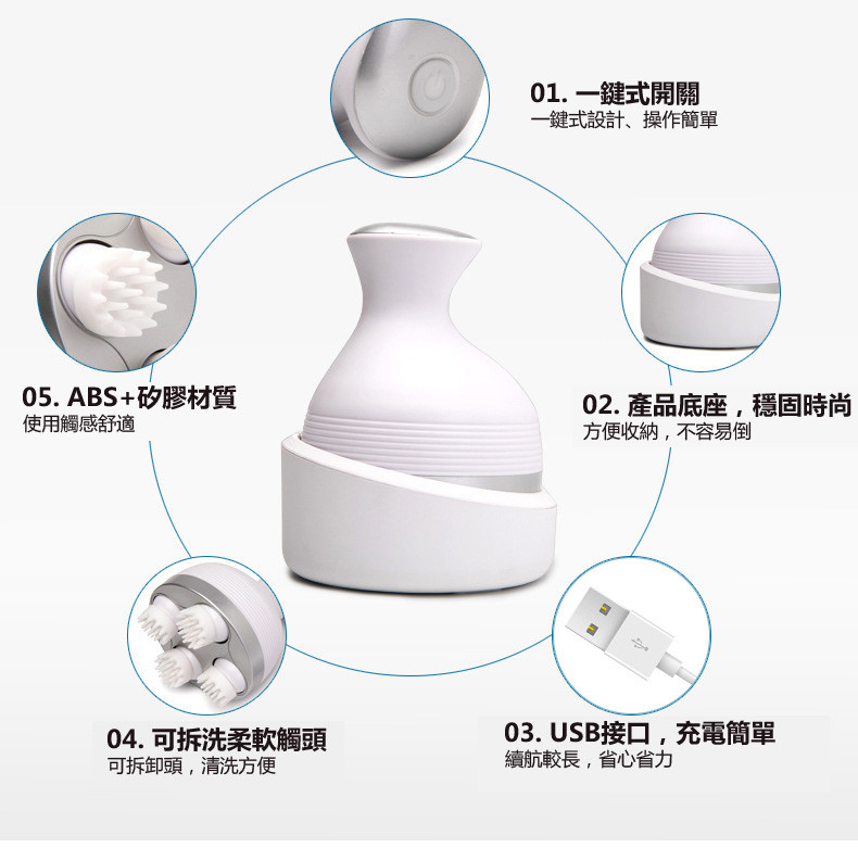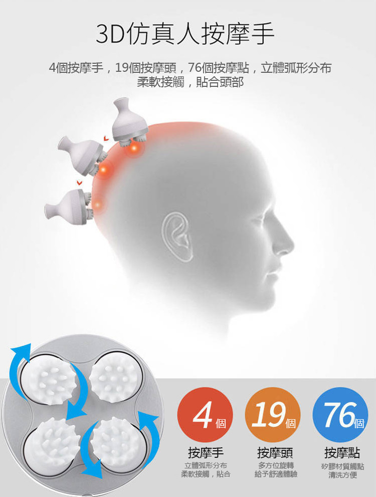 電動式柔梳模仿真人手法,溫柔而徹底地清潔頭皮,同時刺激頭部血液循環達到按摩頭皮的效果。