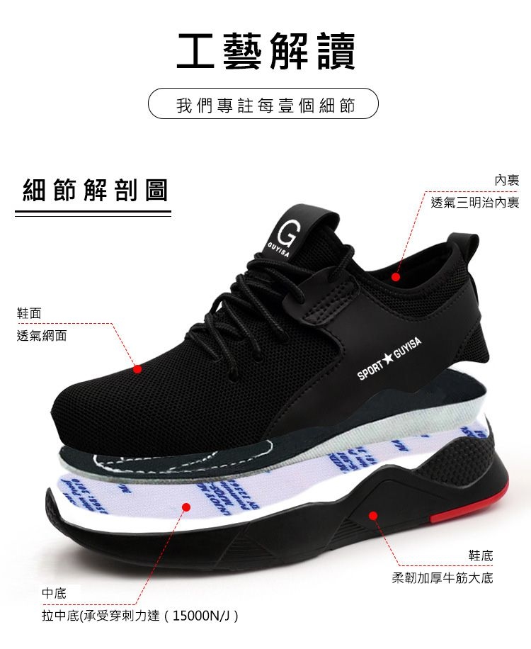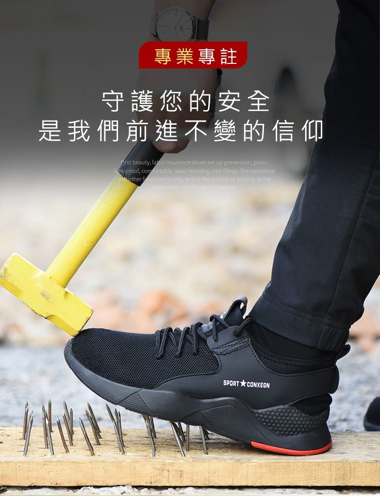 防穿刺底:採用輕質中底的安全鞋,可保護您的雙腳免受尖銳物體刺穿