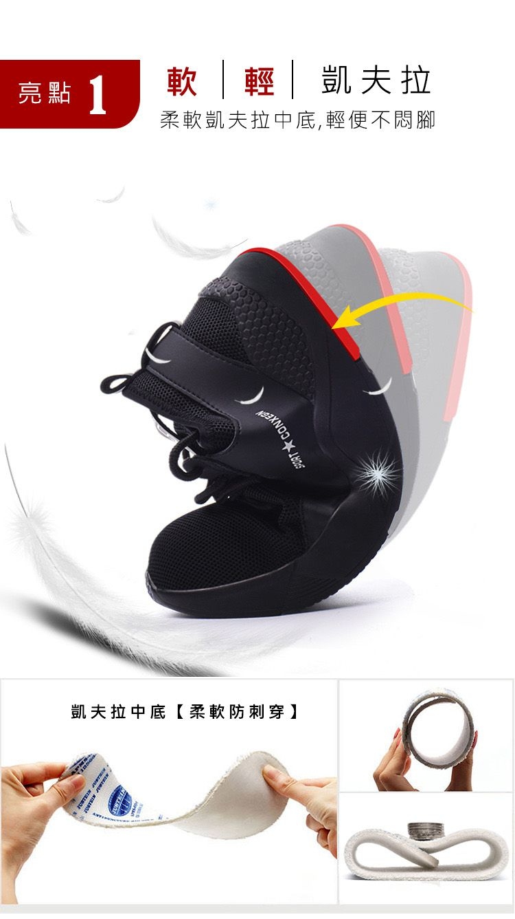 今以後佢會成為你工作同去街所需既唯一一對鞋!有沒有諗過有一對鞋可以令你無後顧之憂咁活動?不論你係毅行者, 又或者諗住係凹凸不平既路上展開長途徒步旅行,抑或係平時返工倉庫搬野,幫人跑腿都好,「無堅不摧」都可以令你輕鬆駕馭 呢一切~堅固既鋼板製成,鞋前部份有硬板保護腳趾,就算有野跌落尼都可以減輕衝力~輕質 Kevlar -中底,踩係釘上都唔會吉親腳板喔!貼心又輕盈既透氣材質,令你長時間著住都保持隻腳透氣,而且柔軟物料令成對鞋都可以全面摺疊,彈性十足!