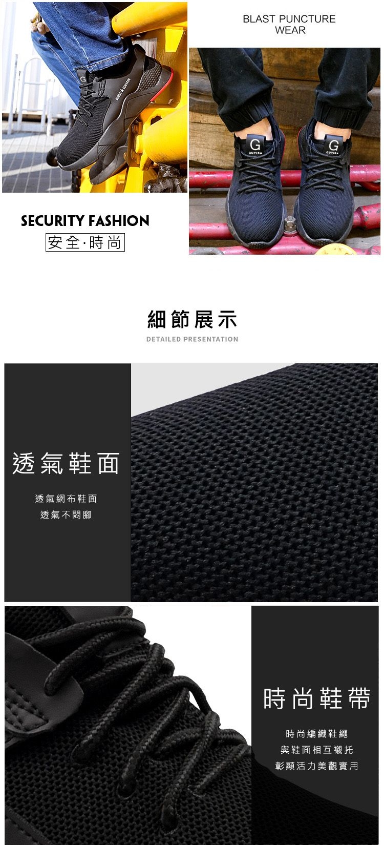 時尚工作鞋:採用透氣網眼鞋面和經典繫帶,營造運動鞋外觀,可用於日常工作鞋和戶外活動鞋
