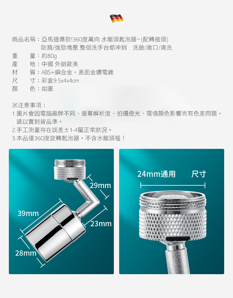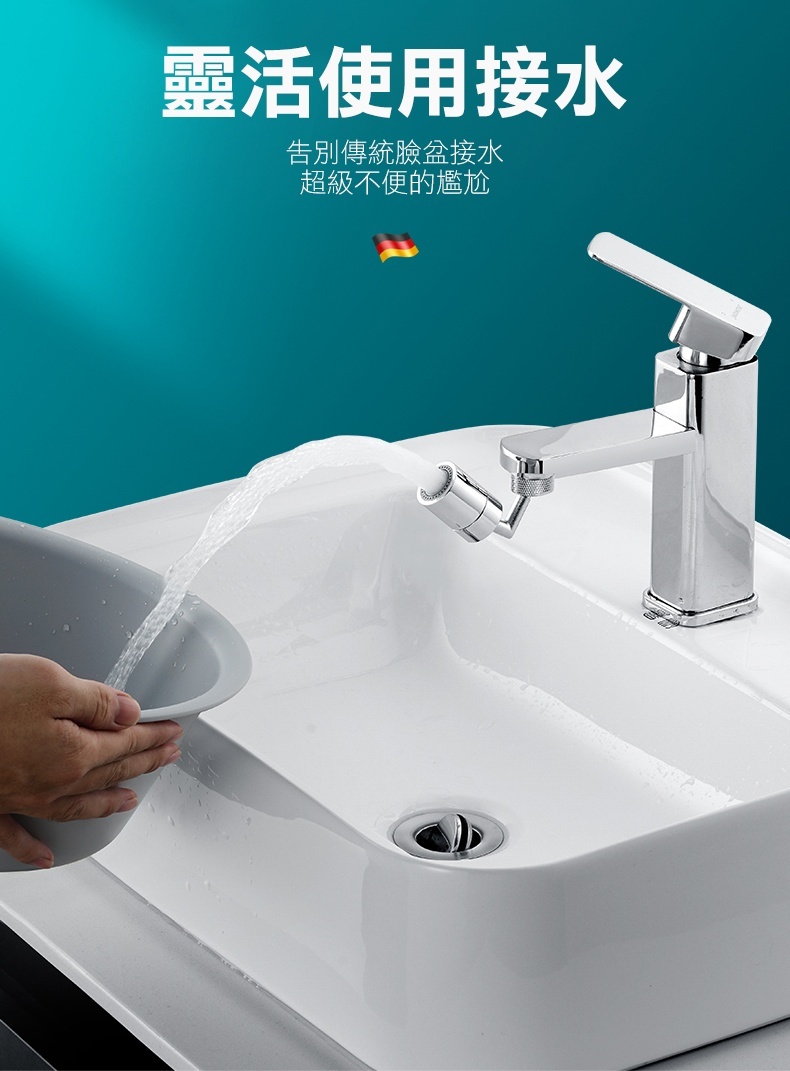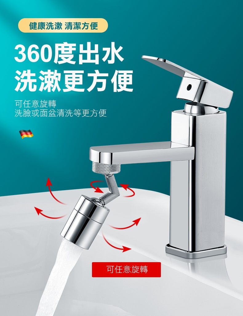 360度萬向水龍頭起泡器│防濺/強勁增壓│整個洗手台都沖到│洗臉/漱口/清洗