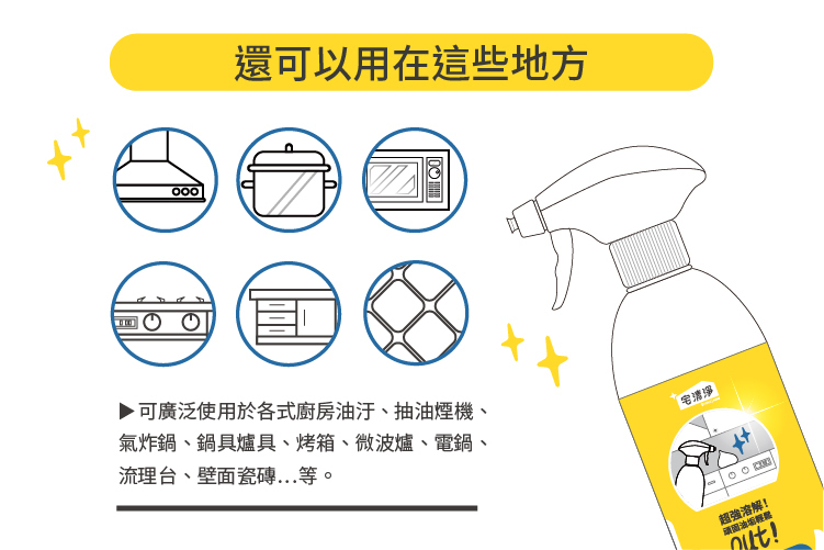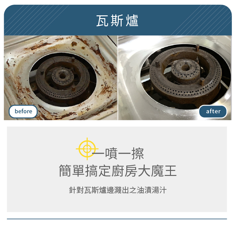 無論是瓦斯爐、流理台上的各種油汙皆適用,