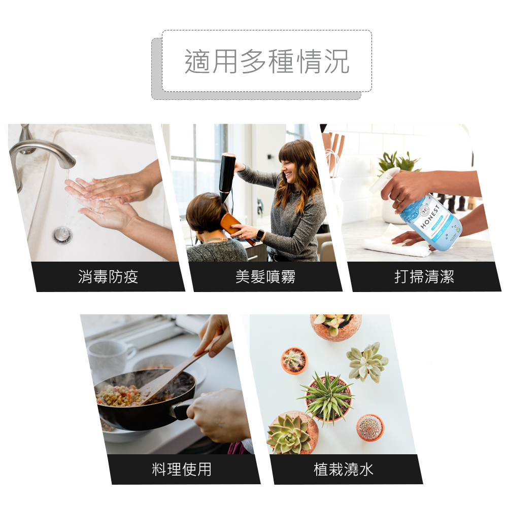 也可用來保濕頭髮、美容皮膚、防蚊蟲、居家清洗、甚至照顧花草...等,環保安全。