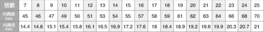溫馨提示:大家可以取自己原有的戒指,量度戒指內直徑為最佳*注:測量內直徑,不是直接在手指上測量,是測量戒指內直徑.由於每個人手型不同, 可能會有1-3號左右誤差屬於正常範圍, 可試換左右手不同手指佩戴 , 一般都會合適.