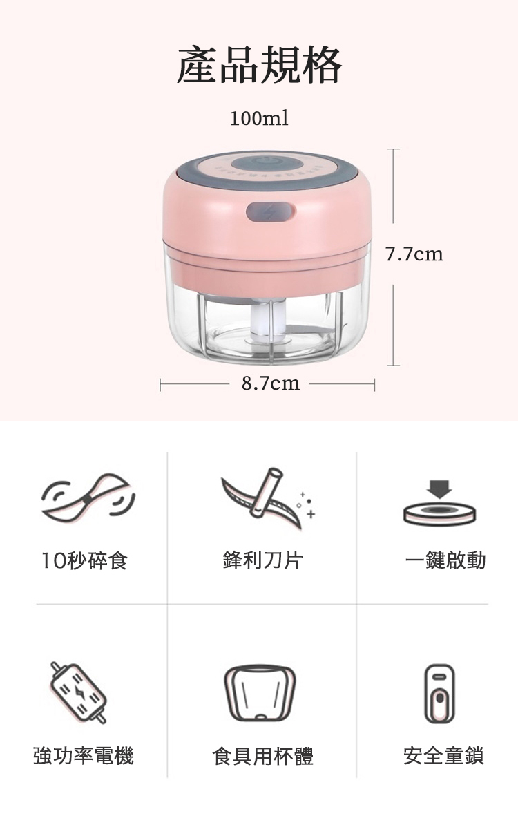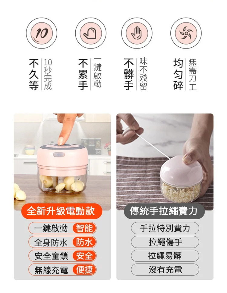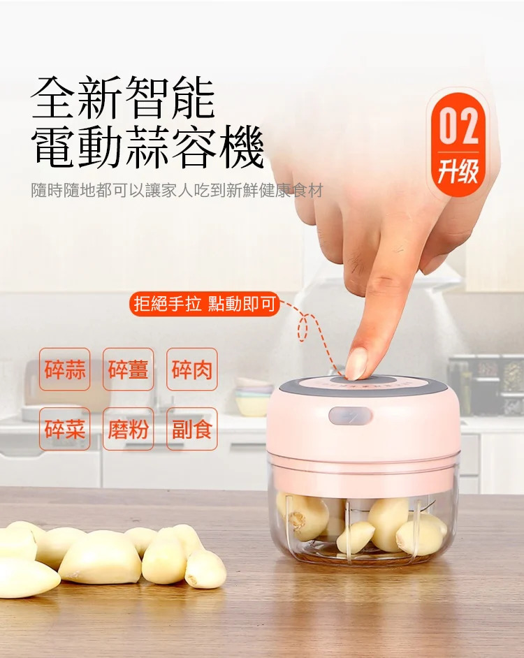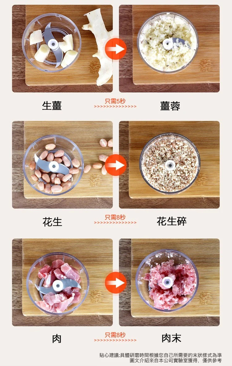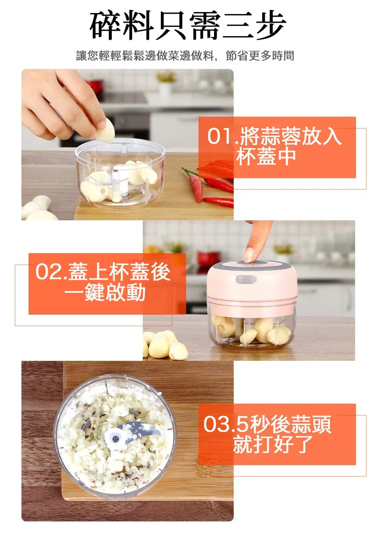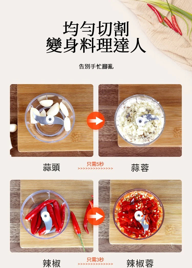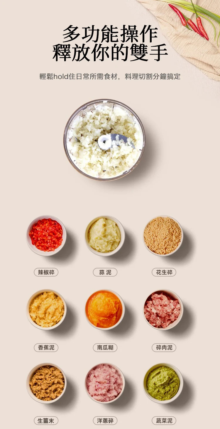 「MINI神隊友」電動無線切菜切碎機│打蒜/薑/辣椒/絞肉/多種副食處理