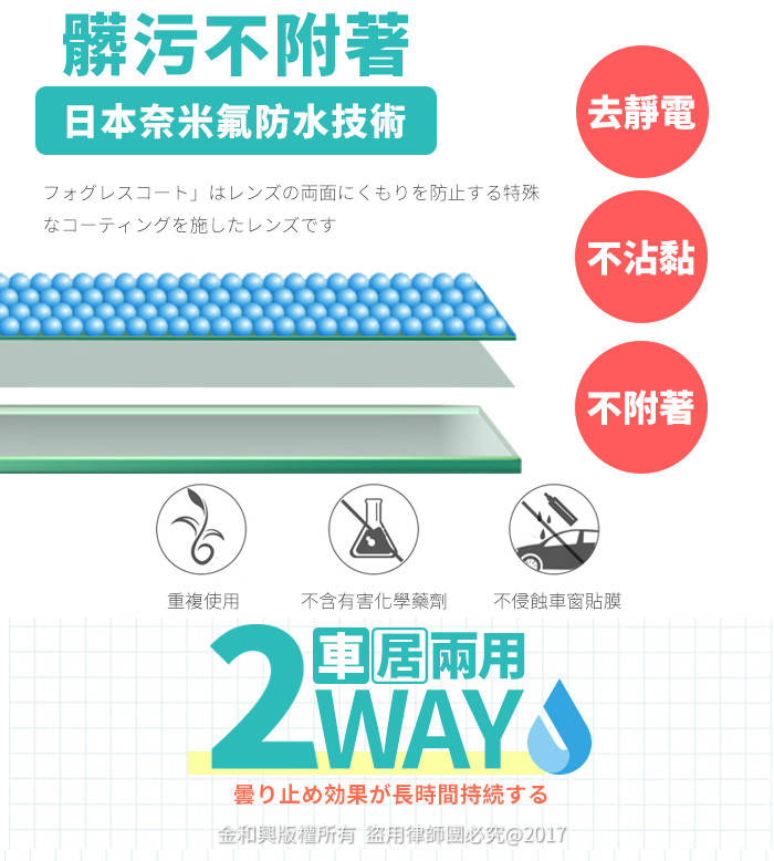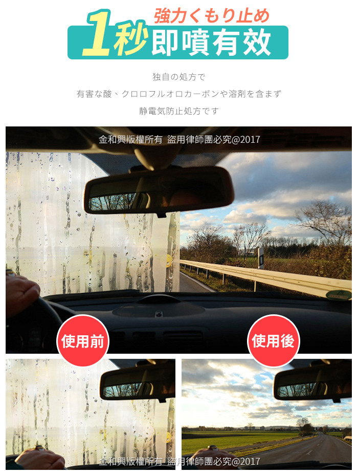 (特別針對:鏡面、眼鏡、玻璃、後照鏡、車窗、安全帽面罩等材質有卓越防霧效果)