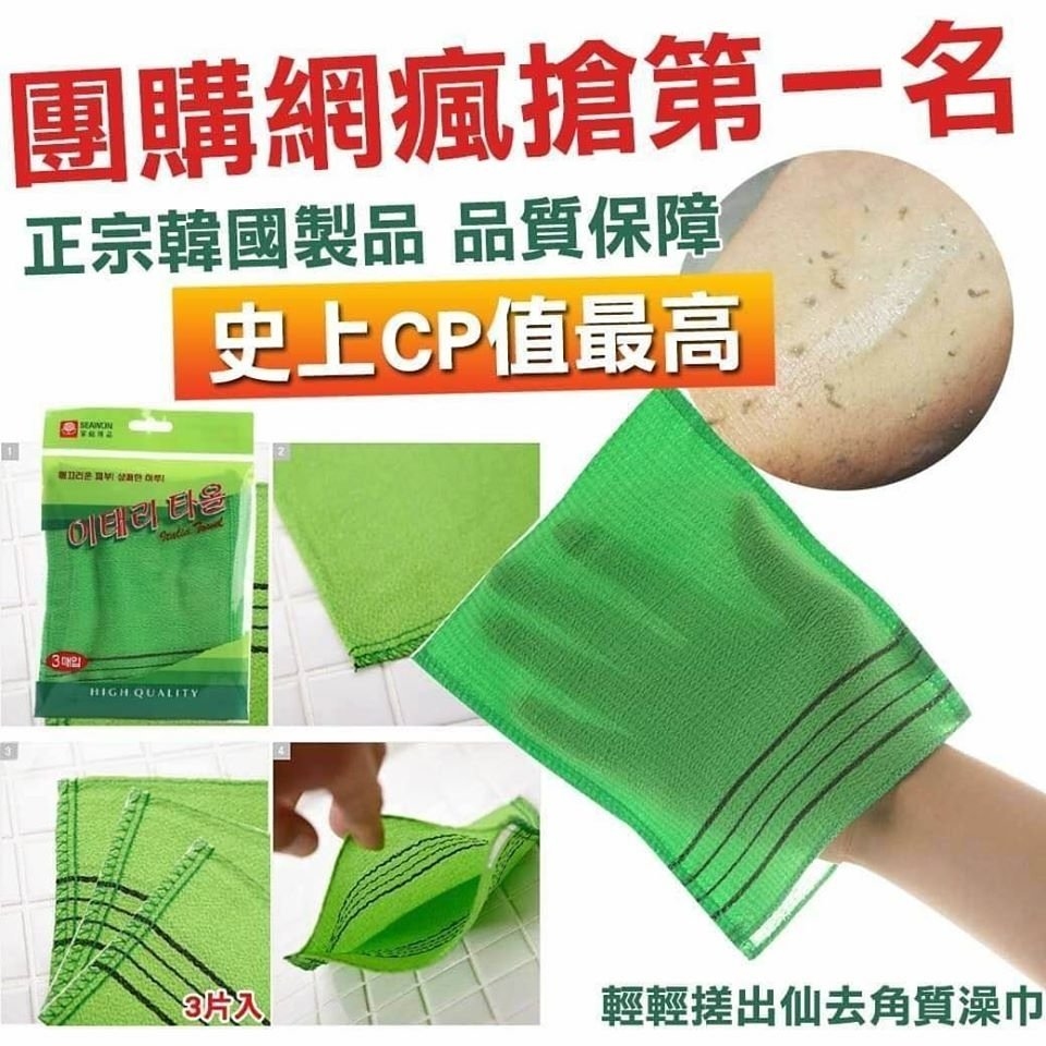 韓國🇰🇷去角質搓搓澡巾(一套3塊)│輕鬆搓去老泥 角質│刷背不求人