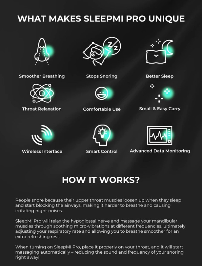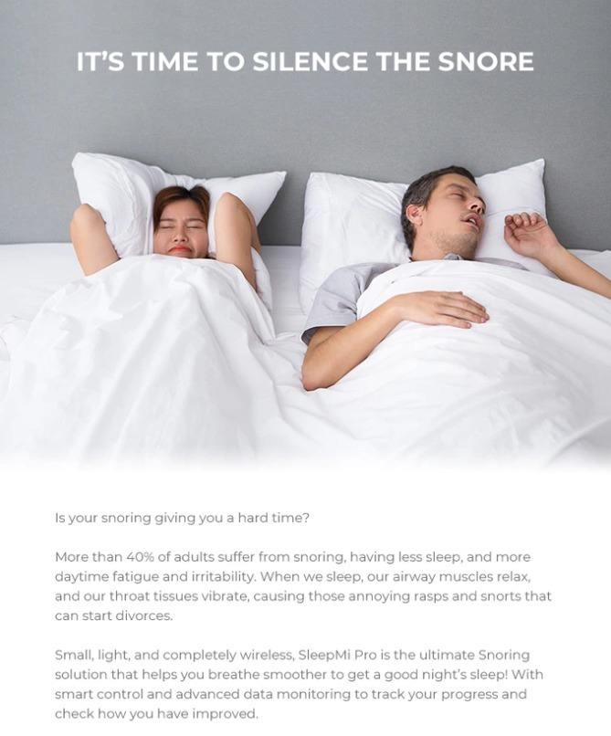 貼上這個小薄片 Snore Circle 智能防打鼾器 安睡一整晚 現代的都市生活,越來越多人入睡困難。好不容易睡著,又要被自己/伴侶的鼾聲驚醒,實在是讓人痛苦。 Snore Circle 智能防打鼾器,幫你遠離鼾聲,擁有一個美好的夜晚。