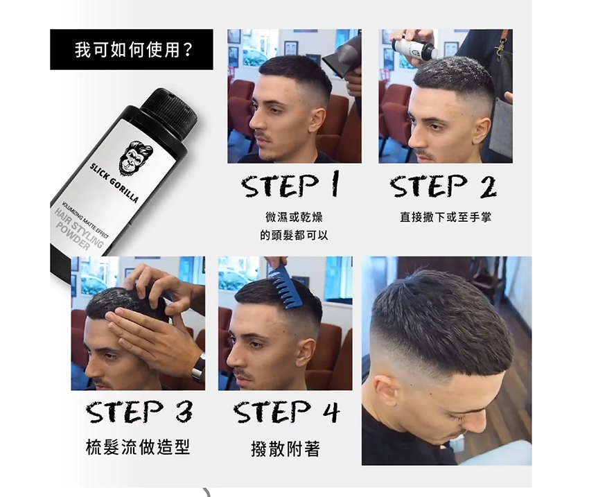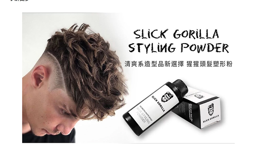 英國的Slick Gorilla是粉狀造型髮泥,比一般髮泥髮臘乾爽不油膩,有超強支撐力,撐起頭髮保持豐厚度,使造型顯的立體,更可隨時再造型,不怕走樣倒塌。中長及中短髮型都適用,型男型女必備造型產品。
