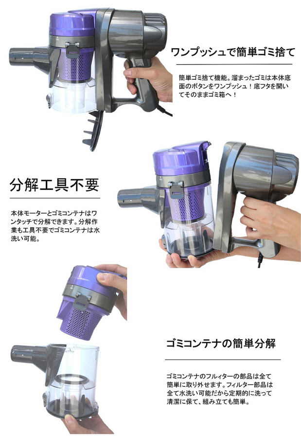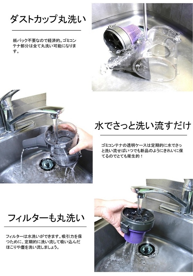 • 不需塵袋,易拆式可用水清洗設計,方便清潔及日常保養
