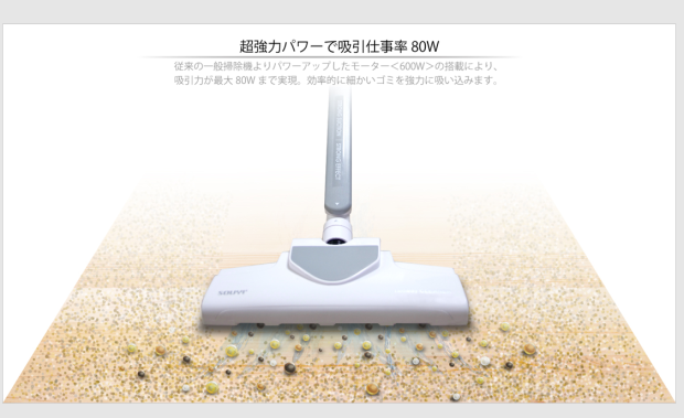 4. 配備功率強大的600 W電機,吸力小於80 W,強力吸收細小灰塵、細沙、頭髮等等都能從電力刷地板頭的纖維層快速吸入。
