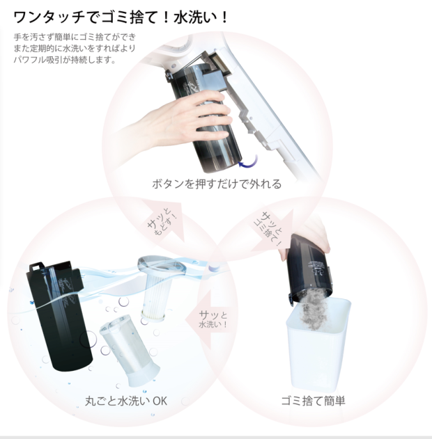 日本 網上 銷量第一 ! 2.2KG輕巧機身,最適合長時間使用,可掛牆擺放 ! 2.2KG輕巧機身,最適合長時間使用,可掛牆擺放 !多角度旋轉刷頭可靈活轉向,就算是較難清潔位置,都可以輕鬆打掃 !HEPA過濾網有效隔絕塵蟎及過敏原,減低因過敏而引發之疾病 !不需塵袋,易拆式可用水清洗設計,方便清潔及日常保養!