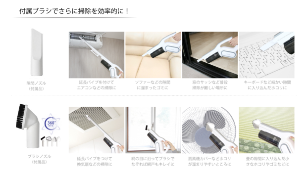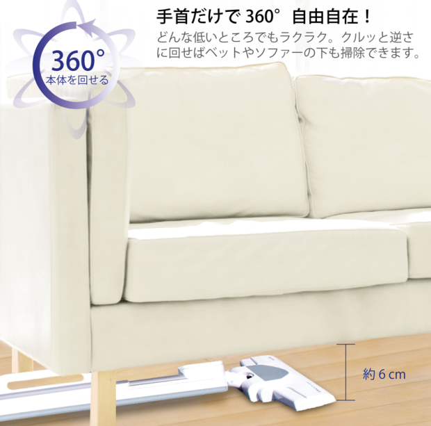 3. 2合1長度設計的板頭可360度旋轉,亦可拆開使吸塵機長度縮短,適合任何空間使用如梳化或床底可倒轉過來除塵、輕輕將機身舉高可去除空調內的灰塵。