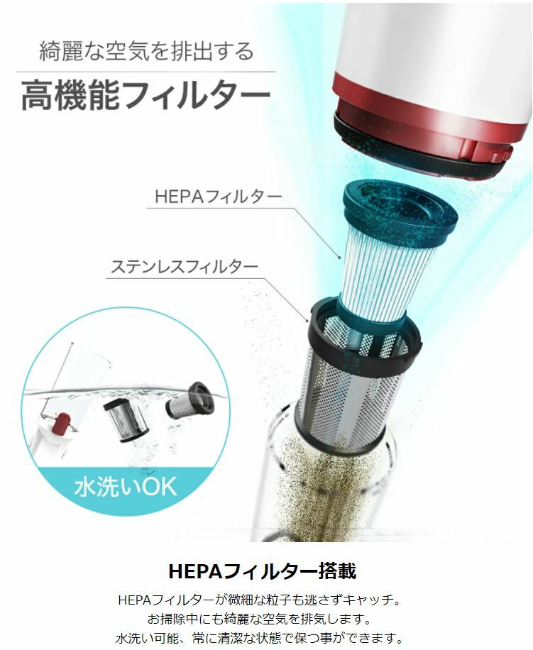• 雙重過濾網,採用高密度HEPA級及不锈鋼過濾網,可直接用水清潔