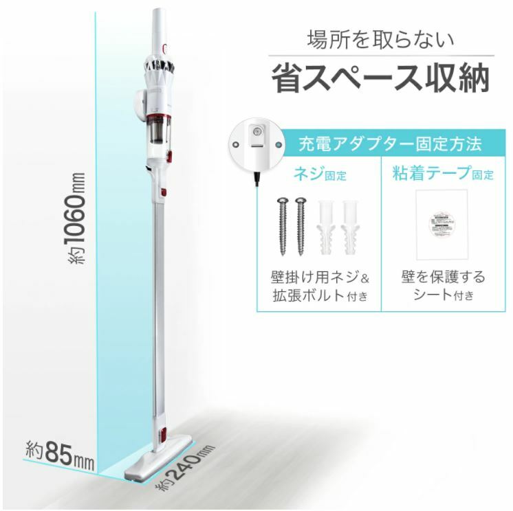 • 附掛牆式充電座,方便收納及替內置鋰電池充電