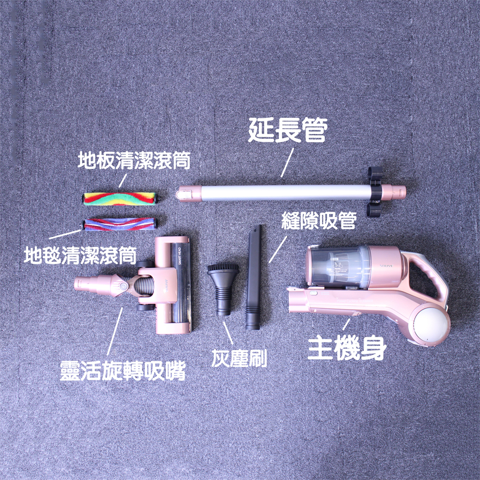 * 附有圓刷和扁吸,轉成手持式操作,方便小面積打掃 (如電腦、公仔、沙發、床)
