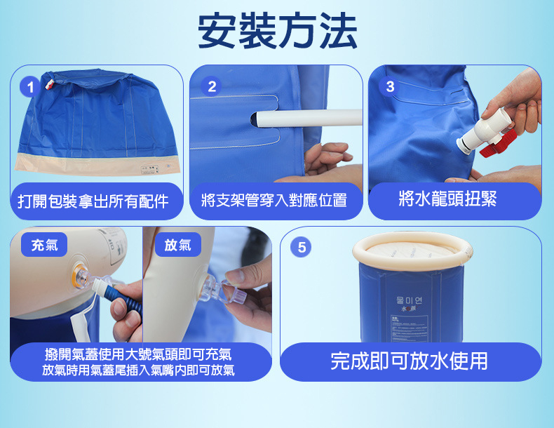 全罩式行動保暖充氣浴桶,超厚壁體隔絕空氣,擁有絕佳保暖效果,使用簡單,安裝快速,收納體積小,不占空間,還附贈舒適充氣墊,不管是客廳看電視邊泡澡,或是臥室邊閱讀邊泡澡,都超方便,讓您隨時隨地都能享受泡澡的樂趣!