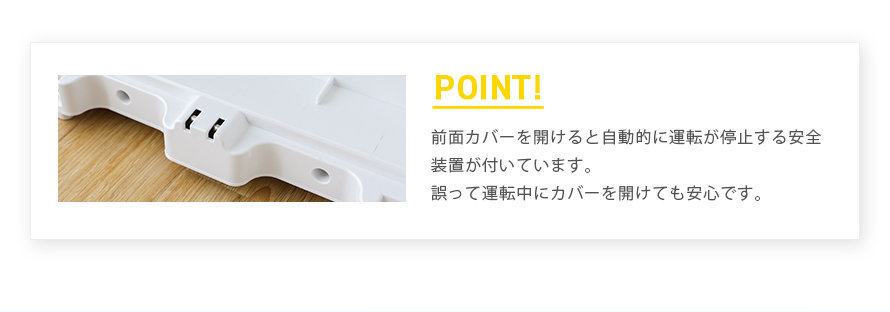 • 安全裝置: 當前蓋打開,機器自動停止運作, 避免孩童誤觸裝置引致意外