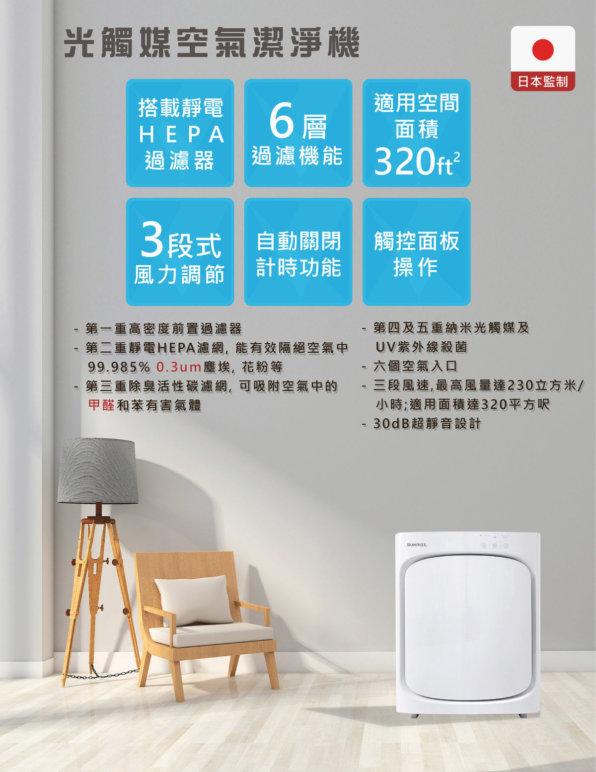 日本 MODERN DECO SUNRIZE - AIR Breeze opl001 HEPA光觸媒空氣潔淨機