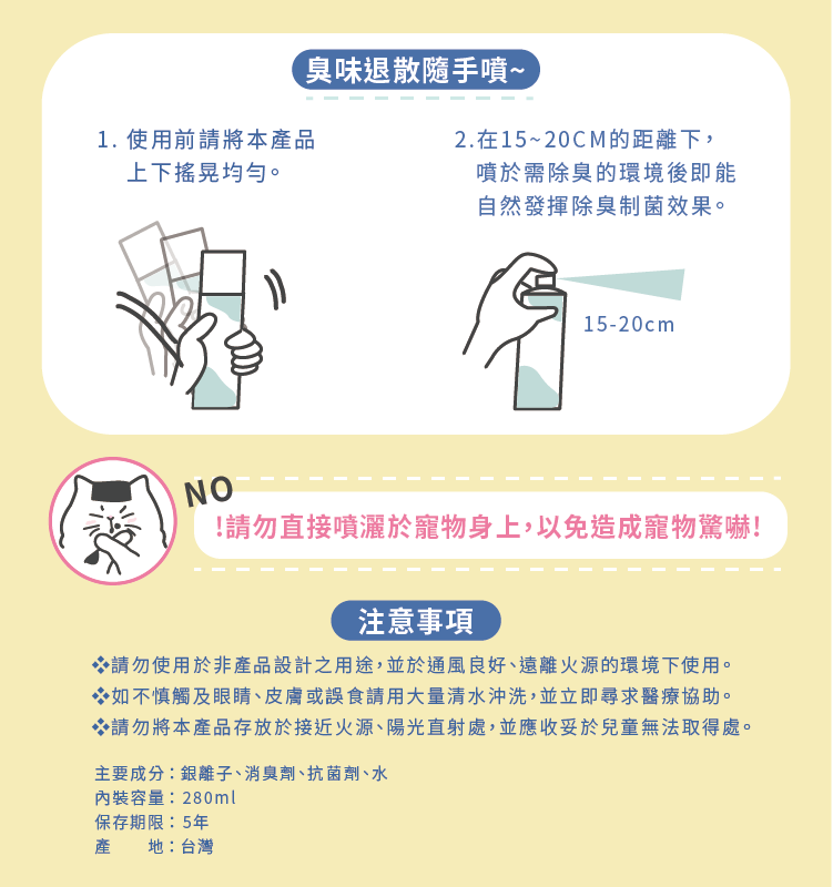寵物瞬效除臭噴霧採用奈米級除臭分子,