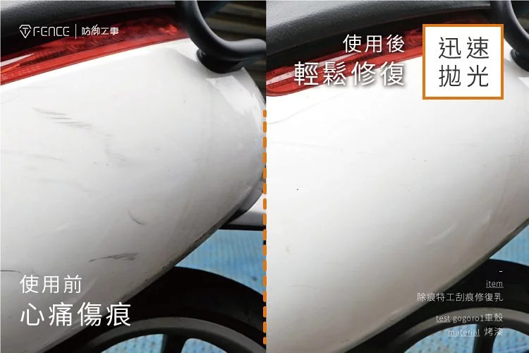極細緻研磨粒子,抹平刮痕不留痕跡。無論是烤漆刮傷、難除鏽斑,一塗一抹立刻光澤再現!從此以後,再也不需為了那破壞完美的刮痕而懊惱。