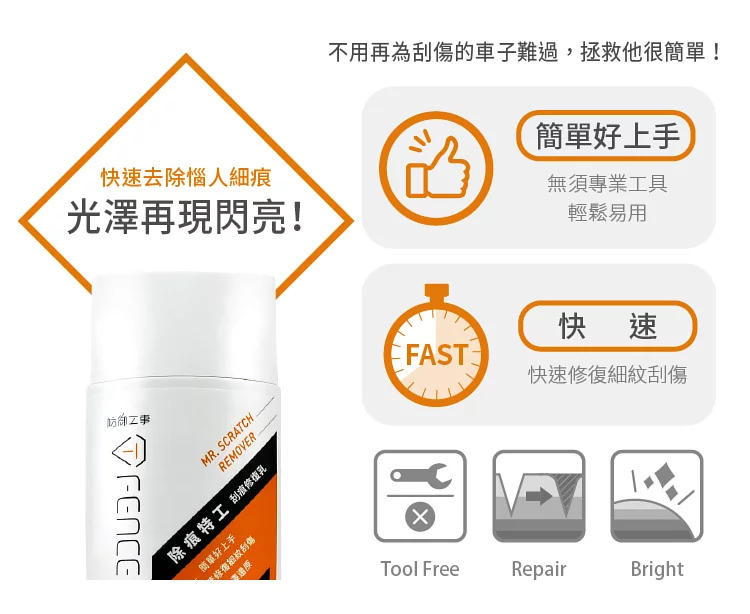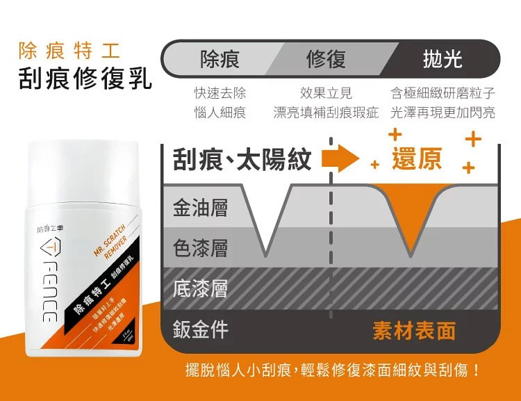 台灣 T-Fence 除痕特工刮痕修復乳|細痕/太陽紋/漆面 60ml (含毛巾)